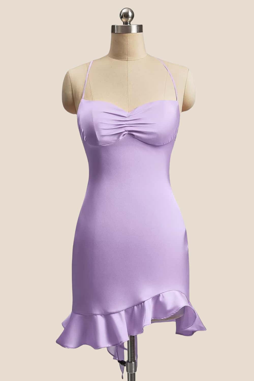 Straps Lavender Satin A-line Short Dress