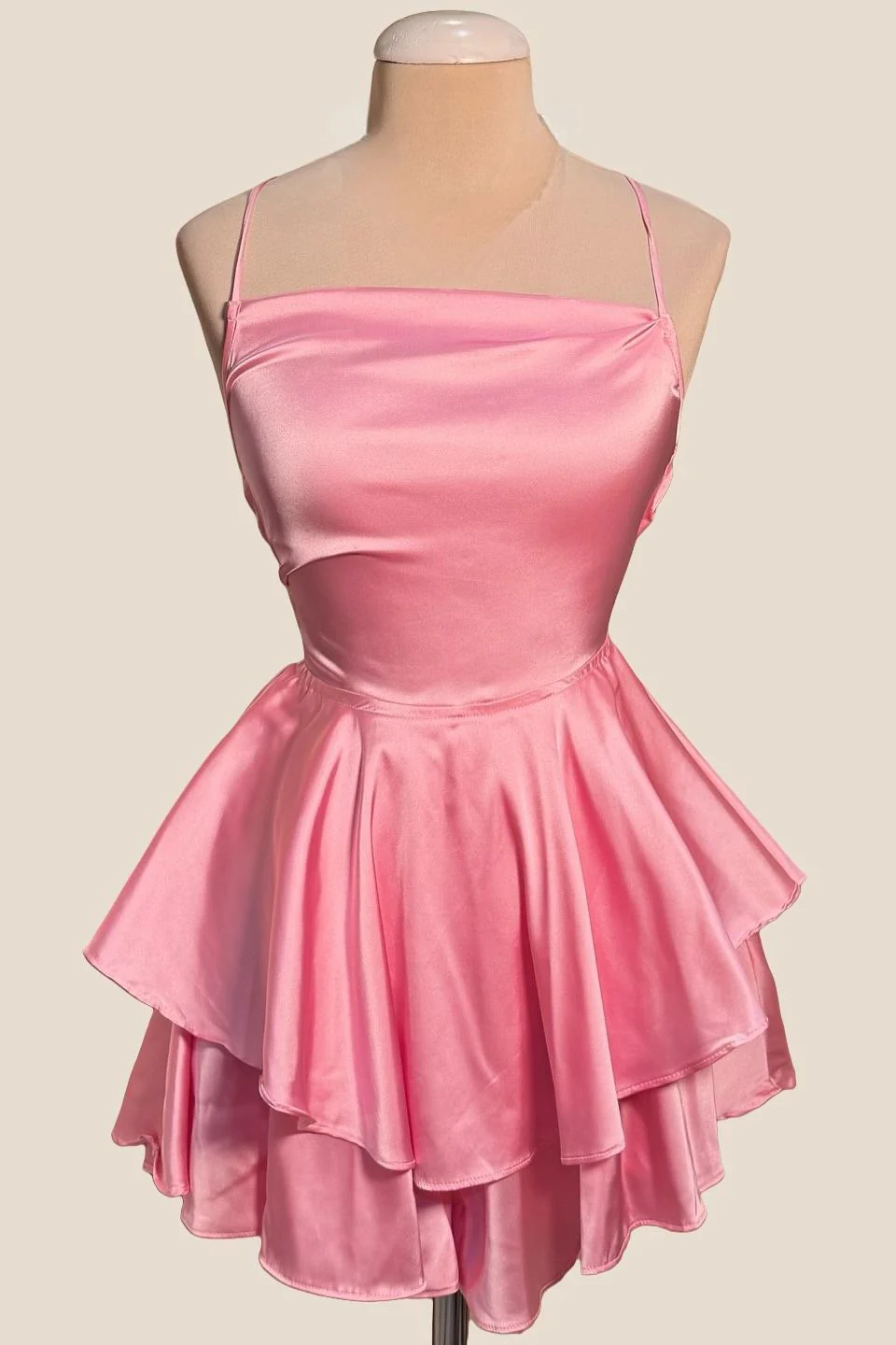 Straps Pink Satin Cowl Neck Mini Dress