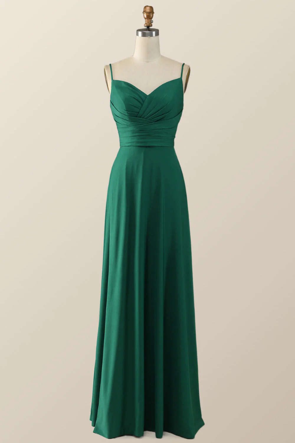 Simply Green Pleated Satin Long Bridesmaid Dress