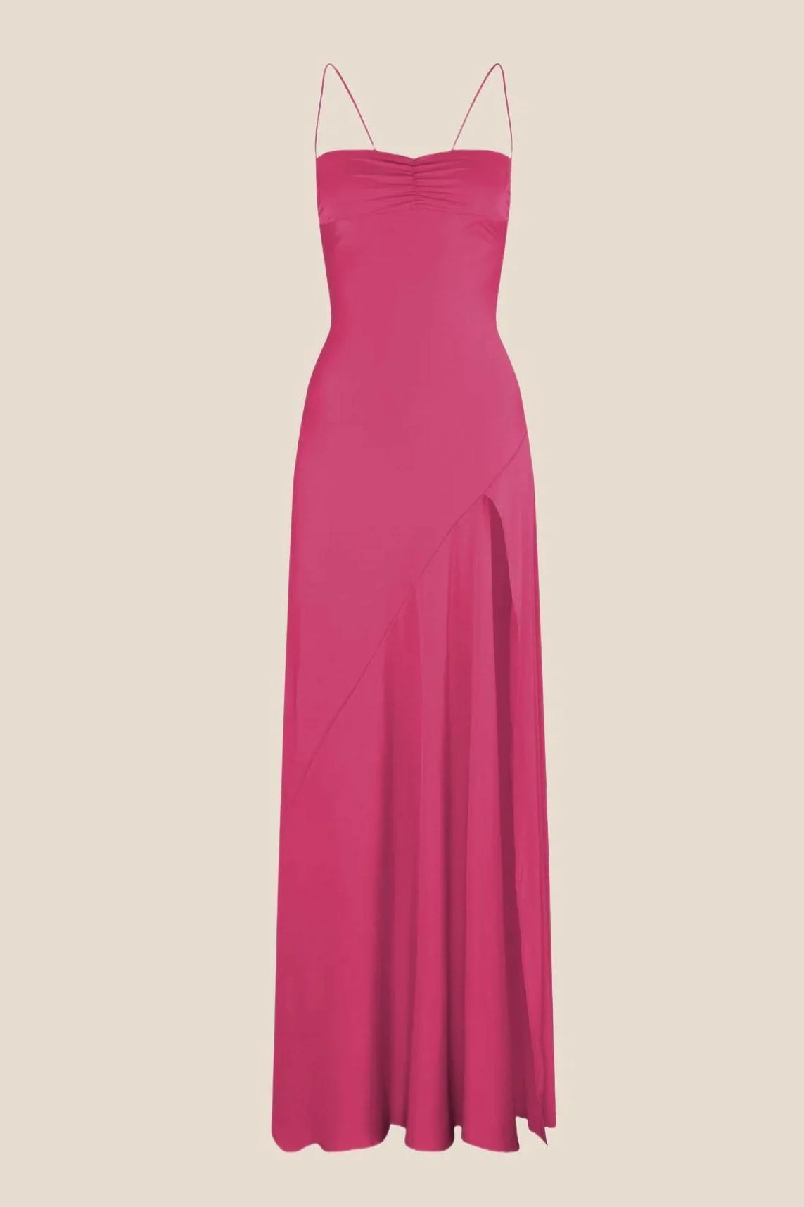 Spaghetti Straps Blush Pink Chiffon A-line Long Bridesmaid Dress
