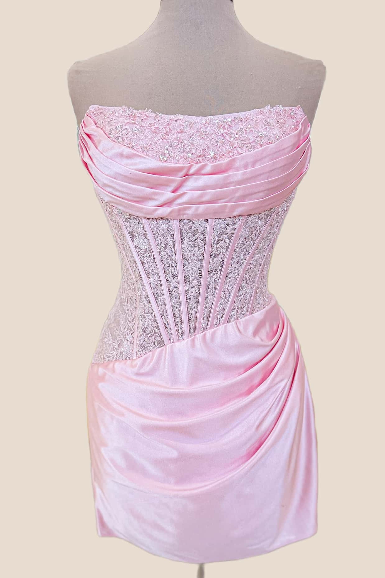 Pink Lace and Satin Fitted Dress
