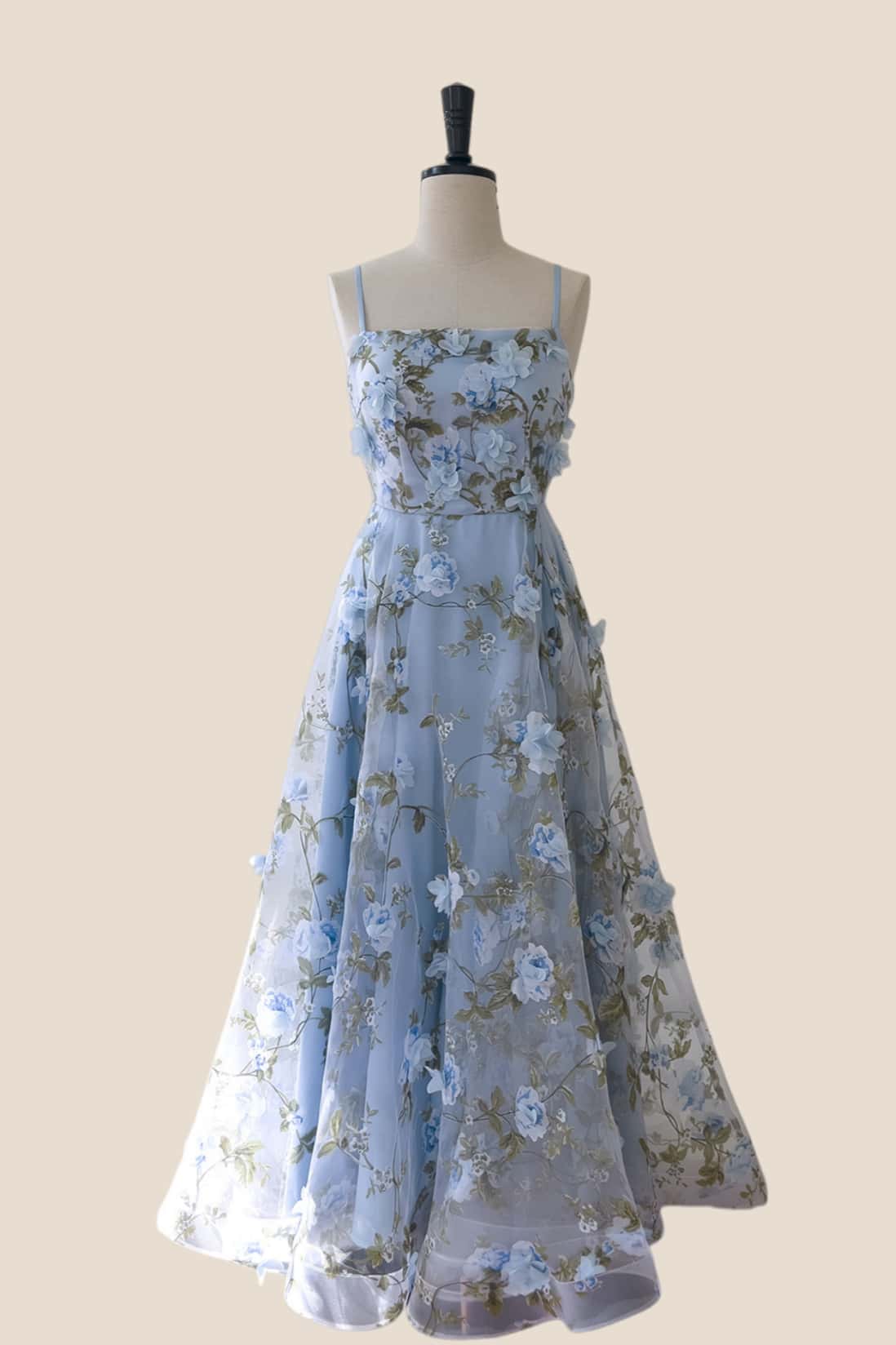 Blue 3D Floral A-line Long Dress