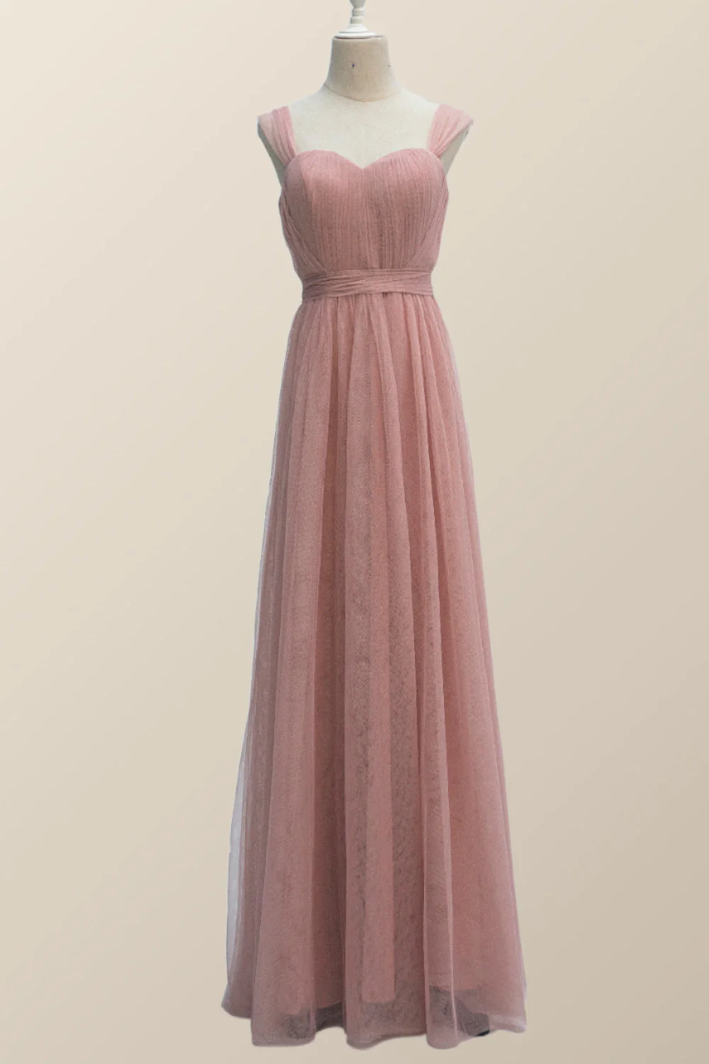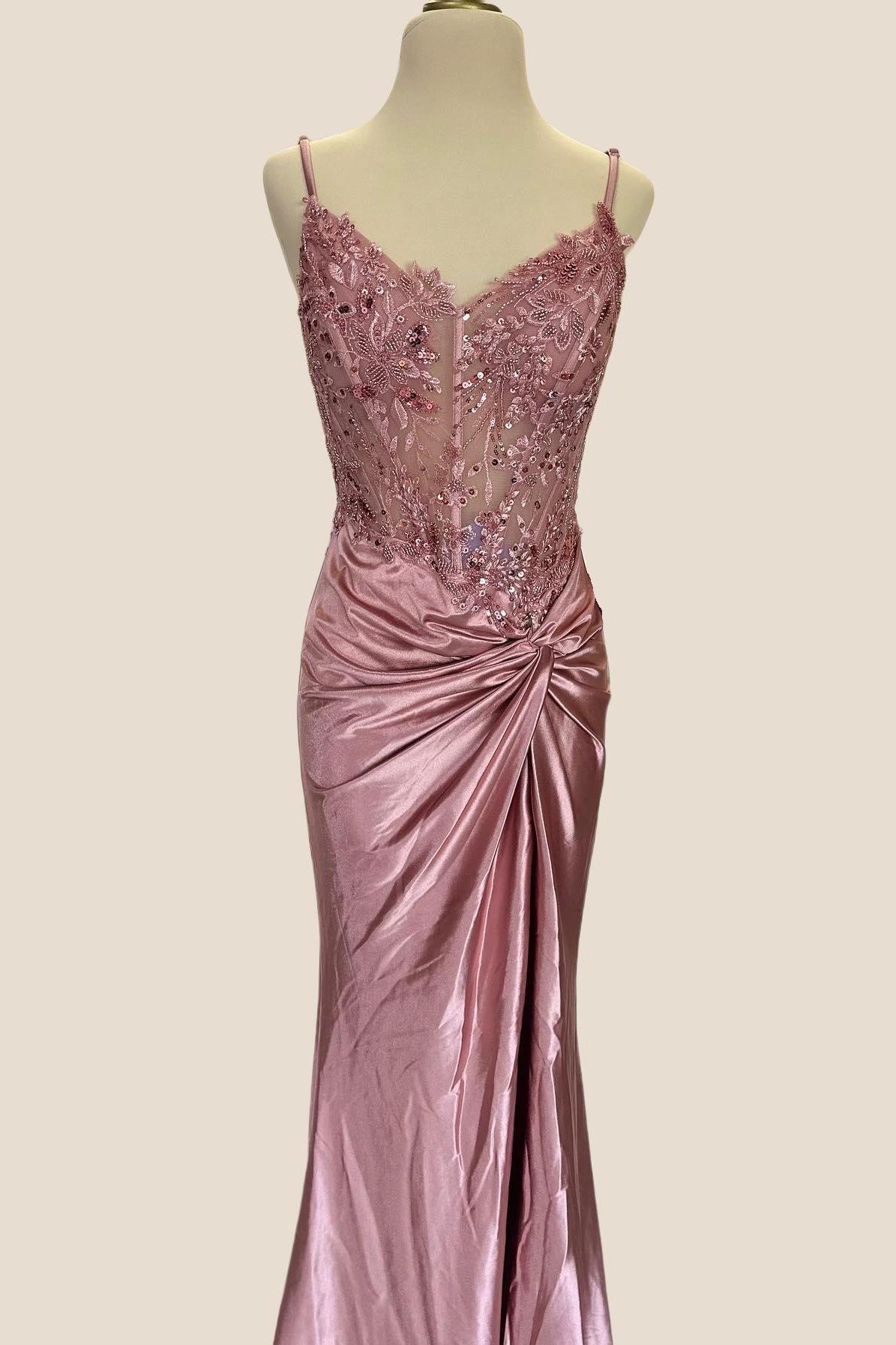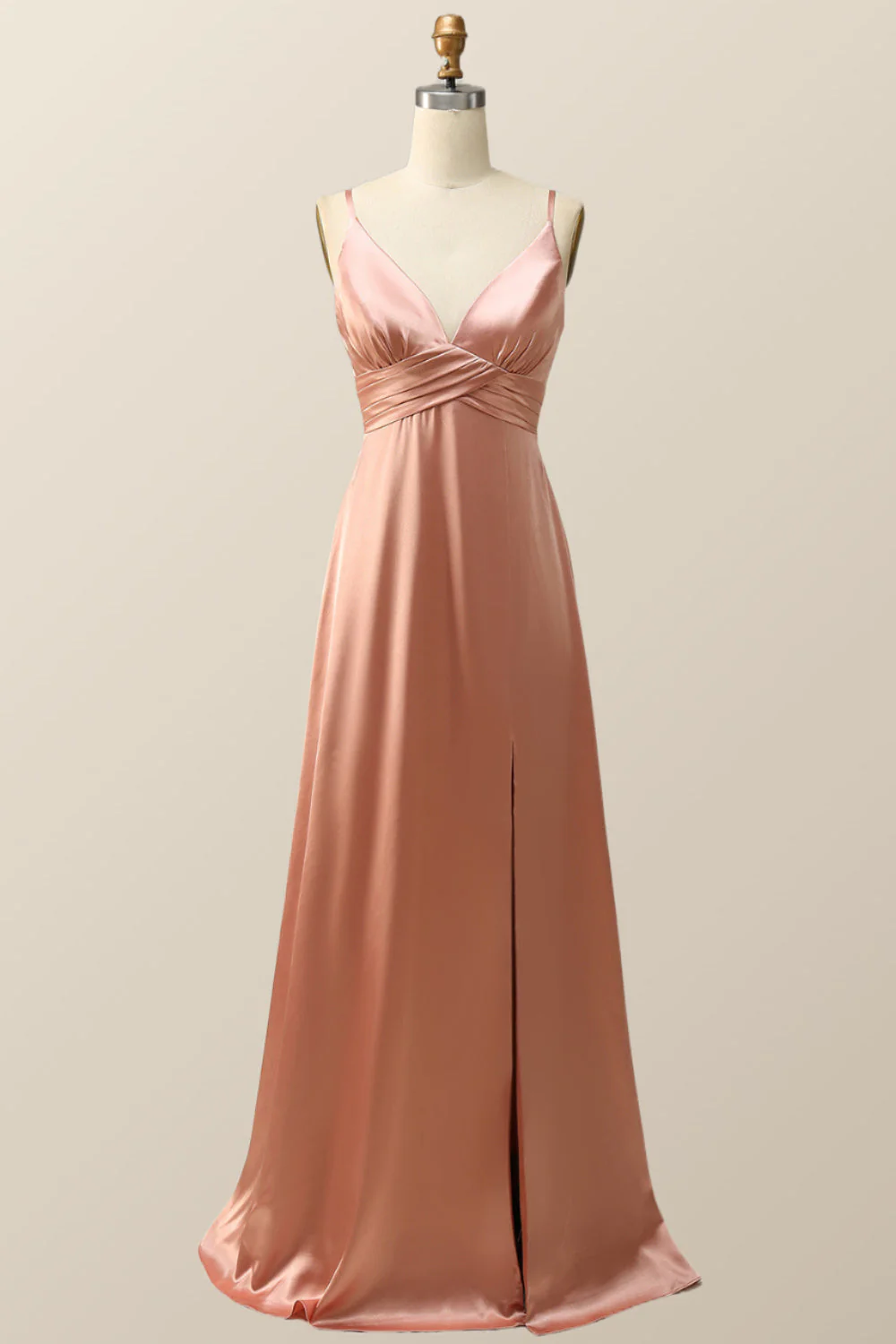 Empire Blush Silk A-line Long Bridesmaid Dress with Slit