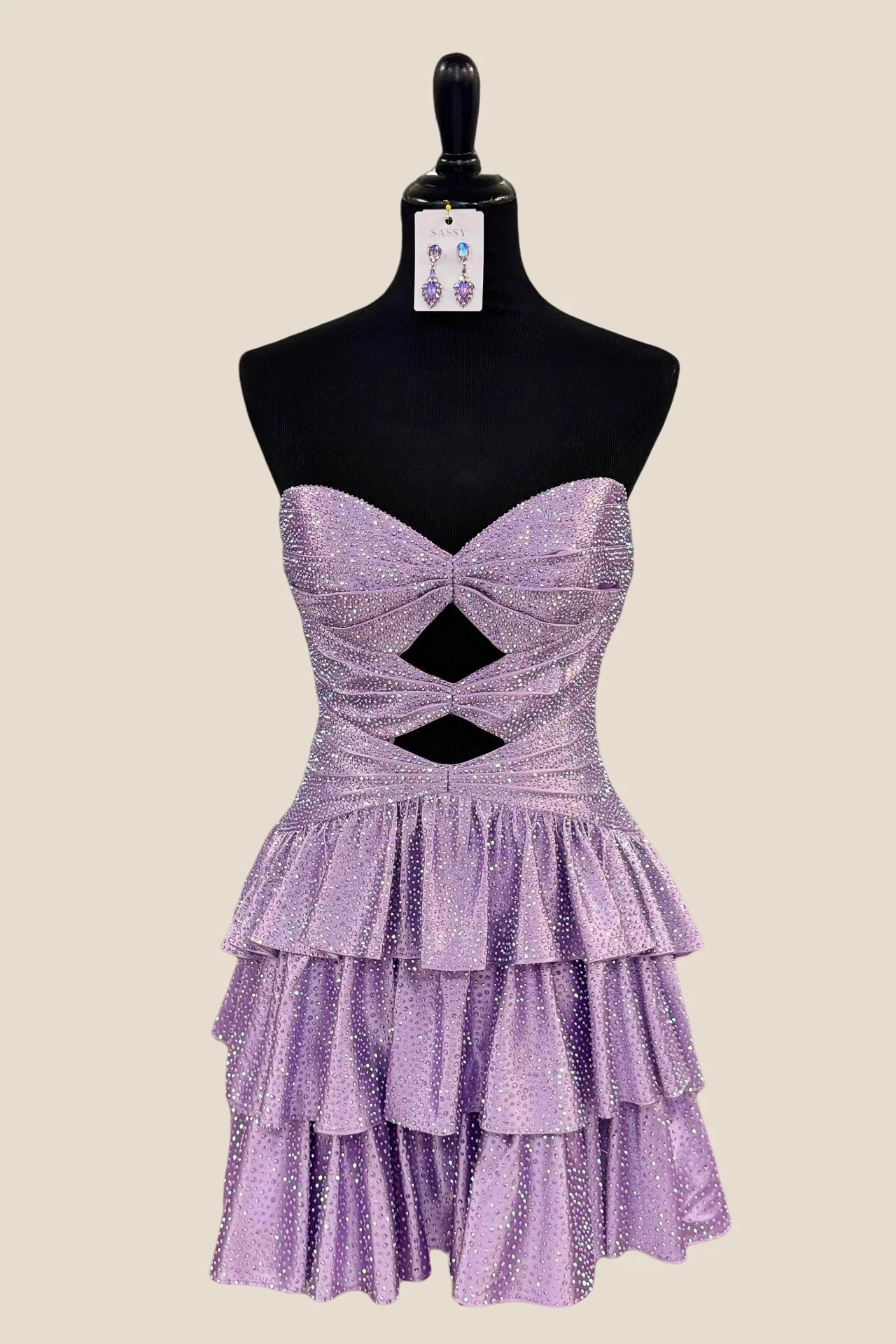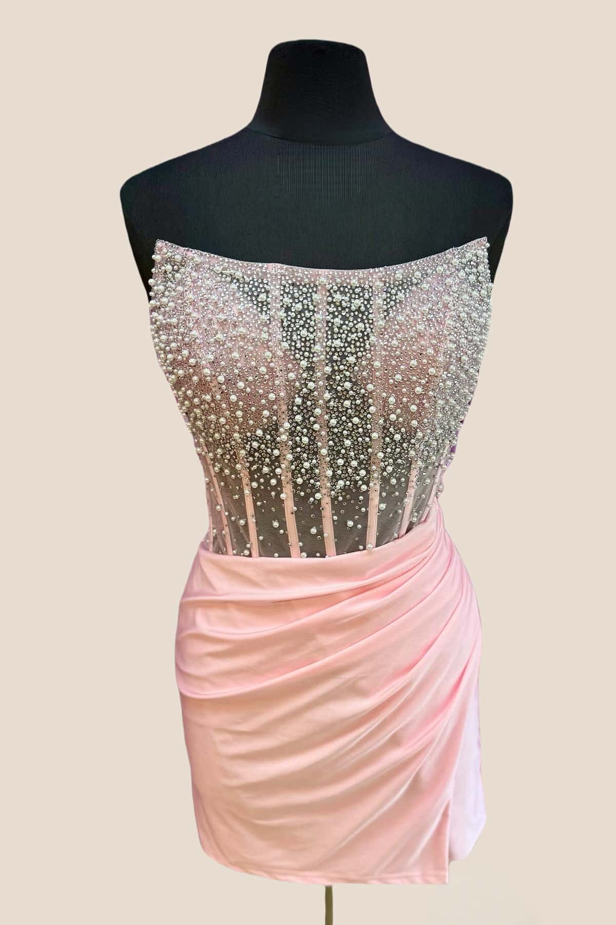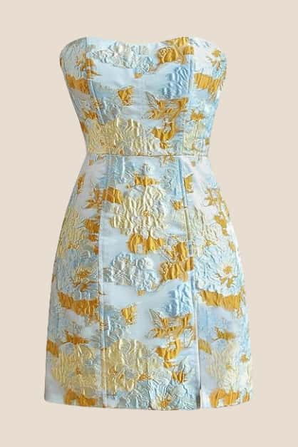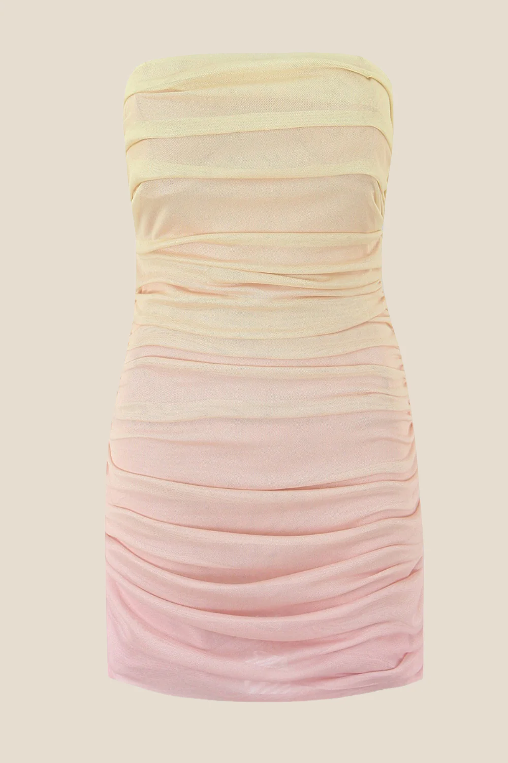 Strapless Multi-color Ruched Short Dress with a Scarf
