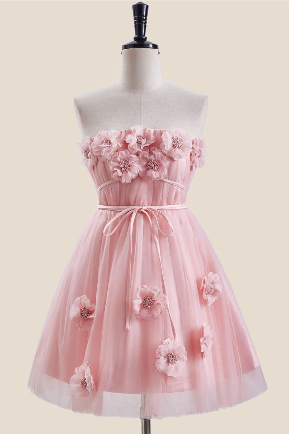 Strapless Orange Tie Front Short Dress