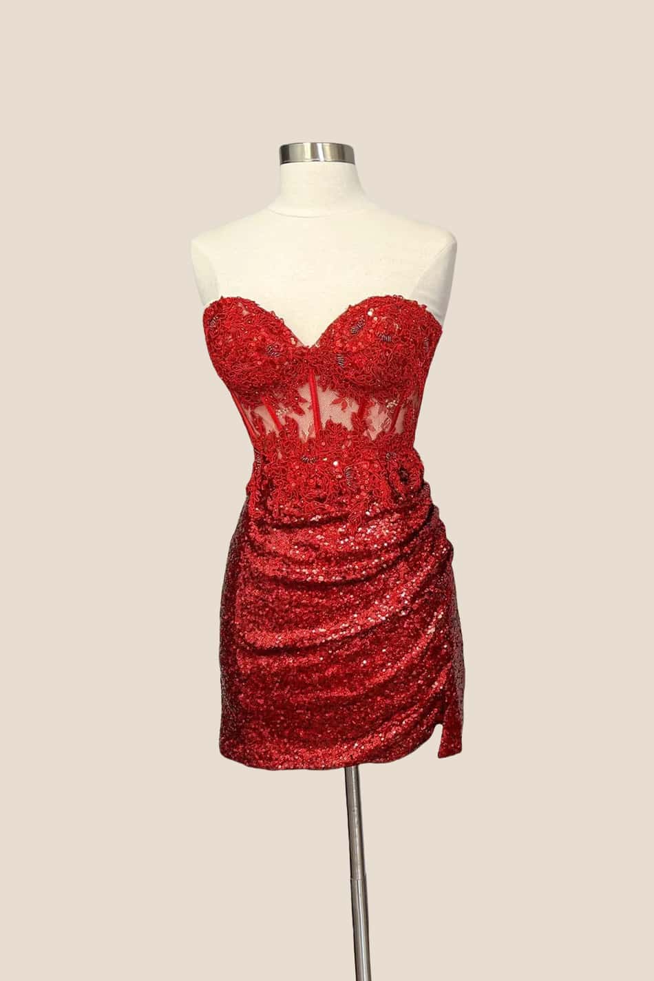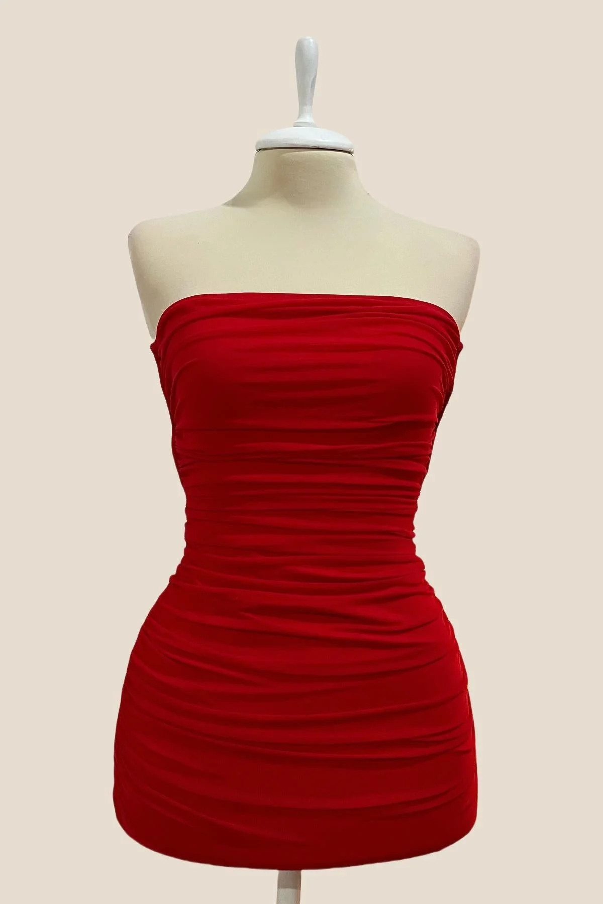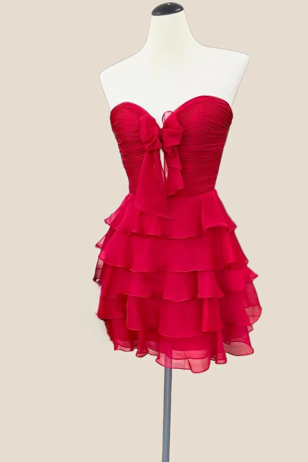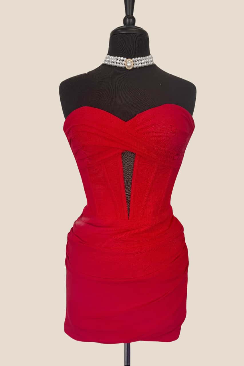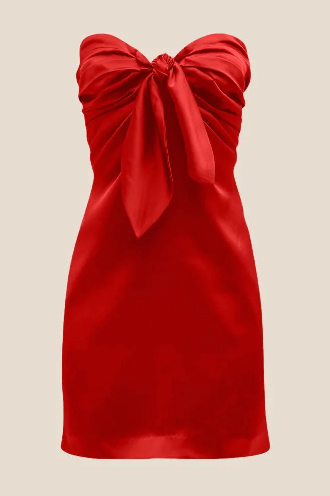 Strapless Red Tie Front Short Dress