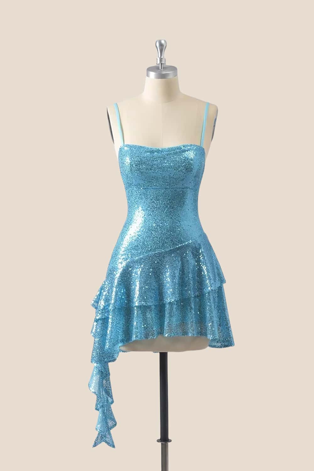 Straps Burgundy Satin Cowl Neck Mini Dress