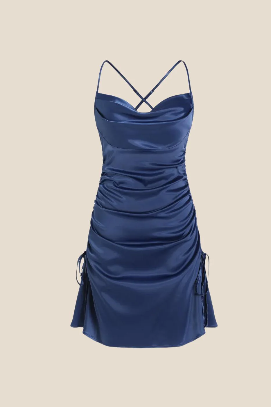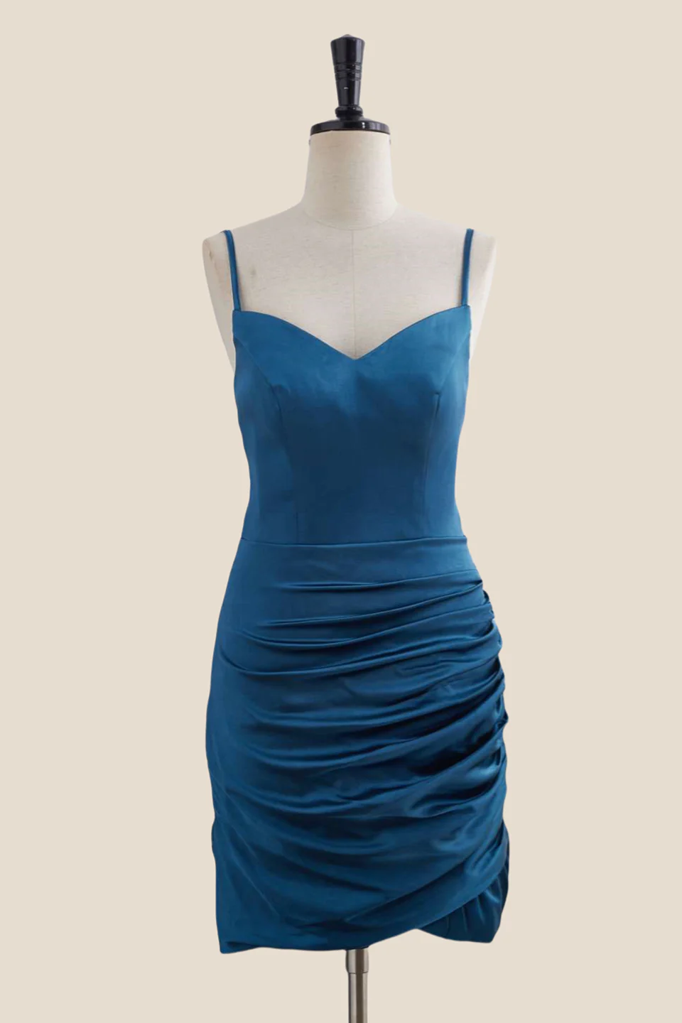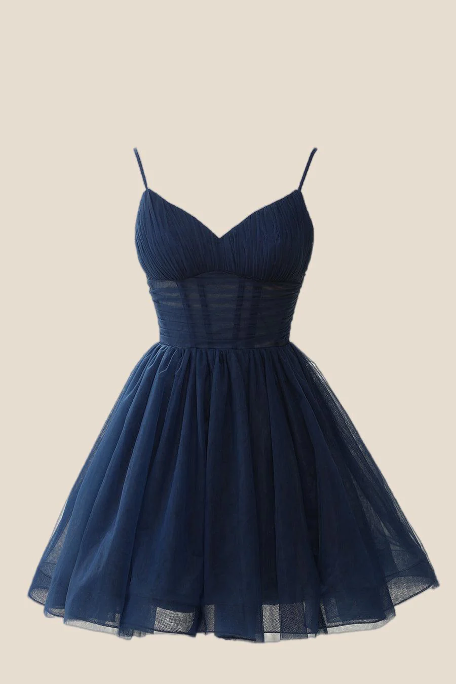 Straps Navy Blue Pleated A-line Homecoming Dress