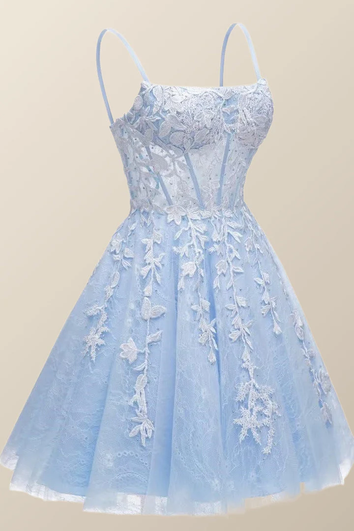 Straps Royal Blue Satin A-line Short Dress