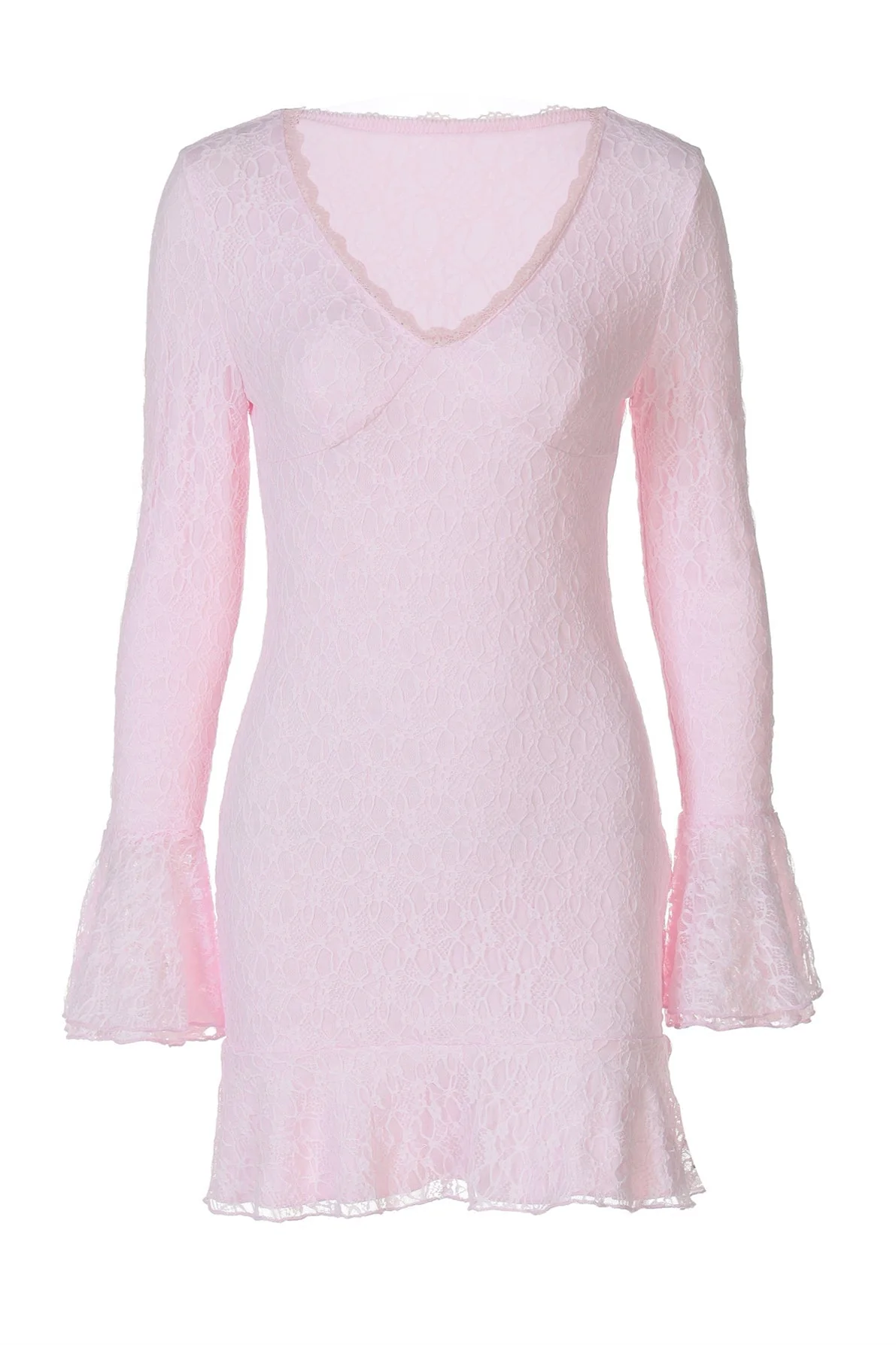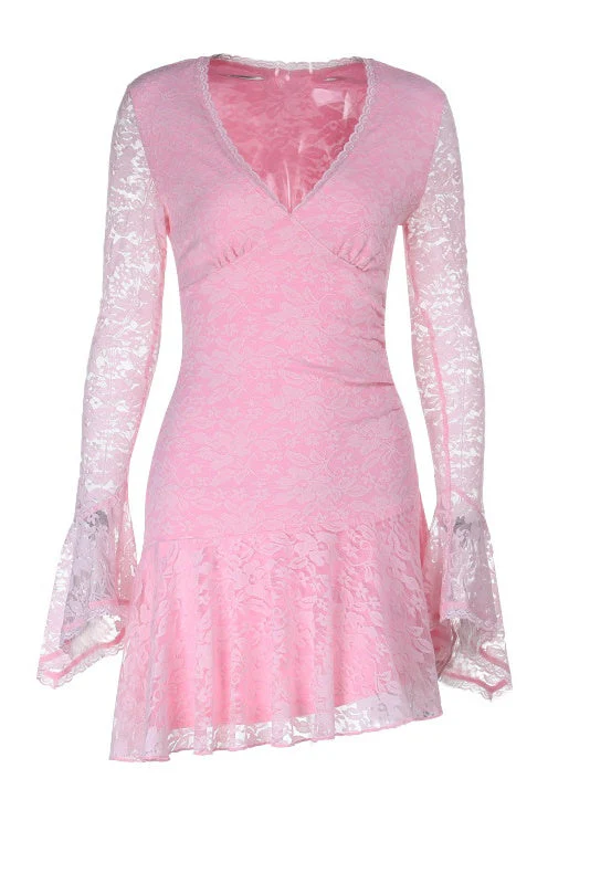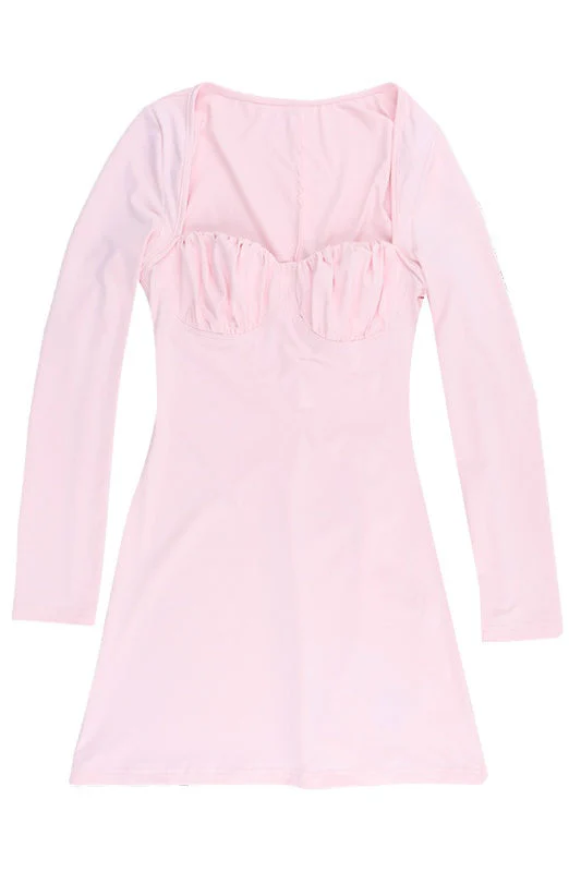 Long Sleeves Pink Short Dress