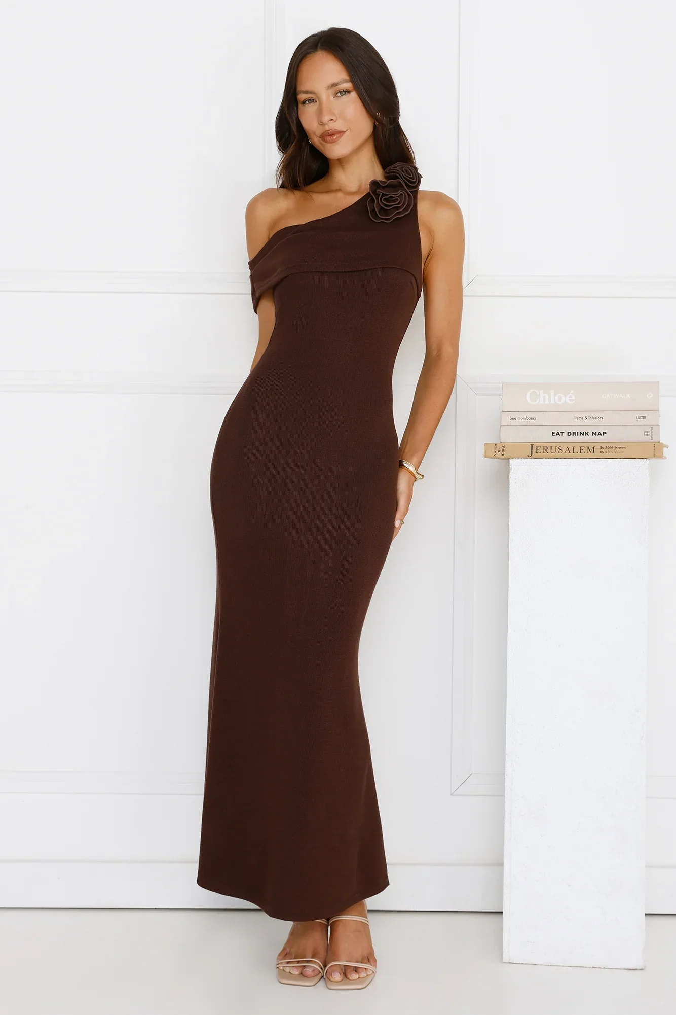 Solara Satin Maxi Dress Brown