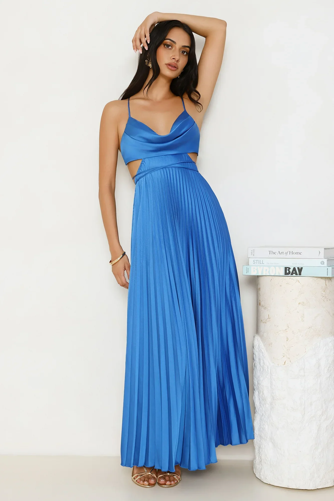 Solara Satin Maxi Dress Blue