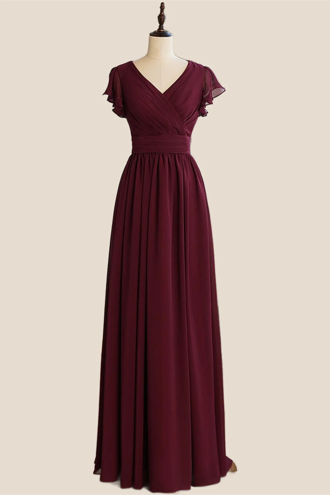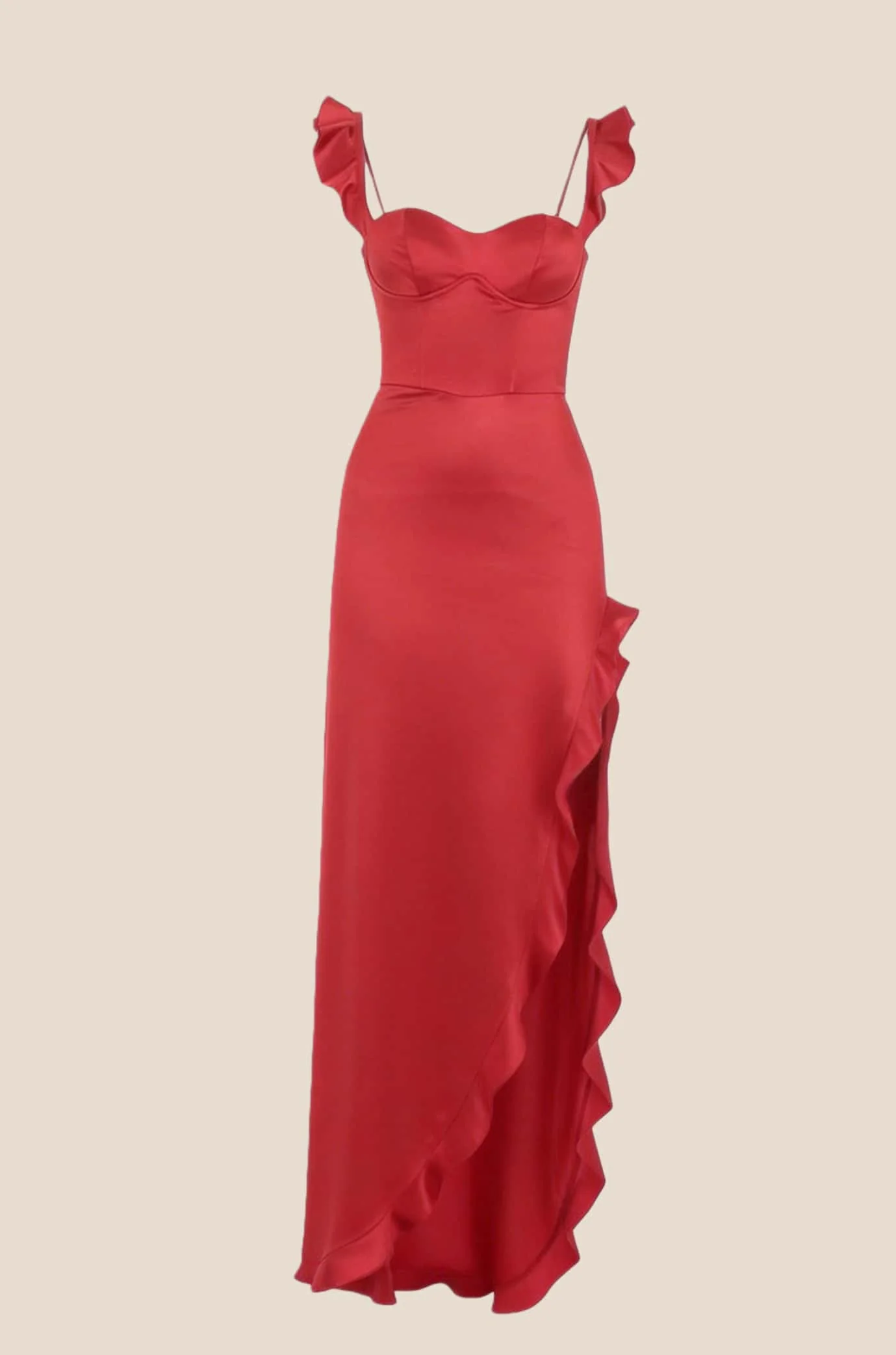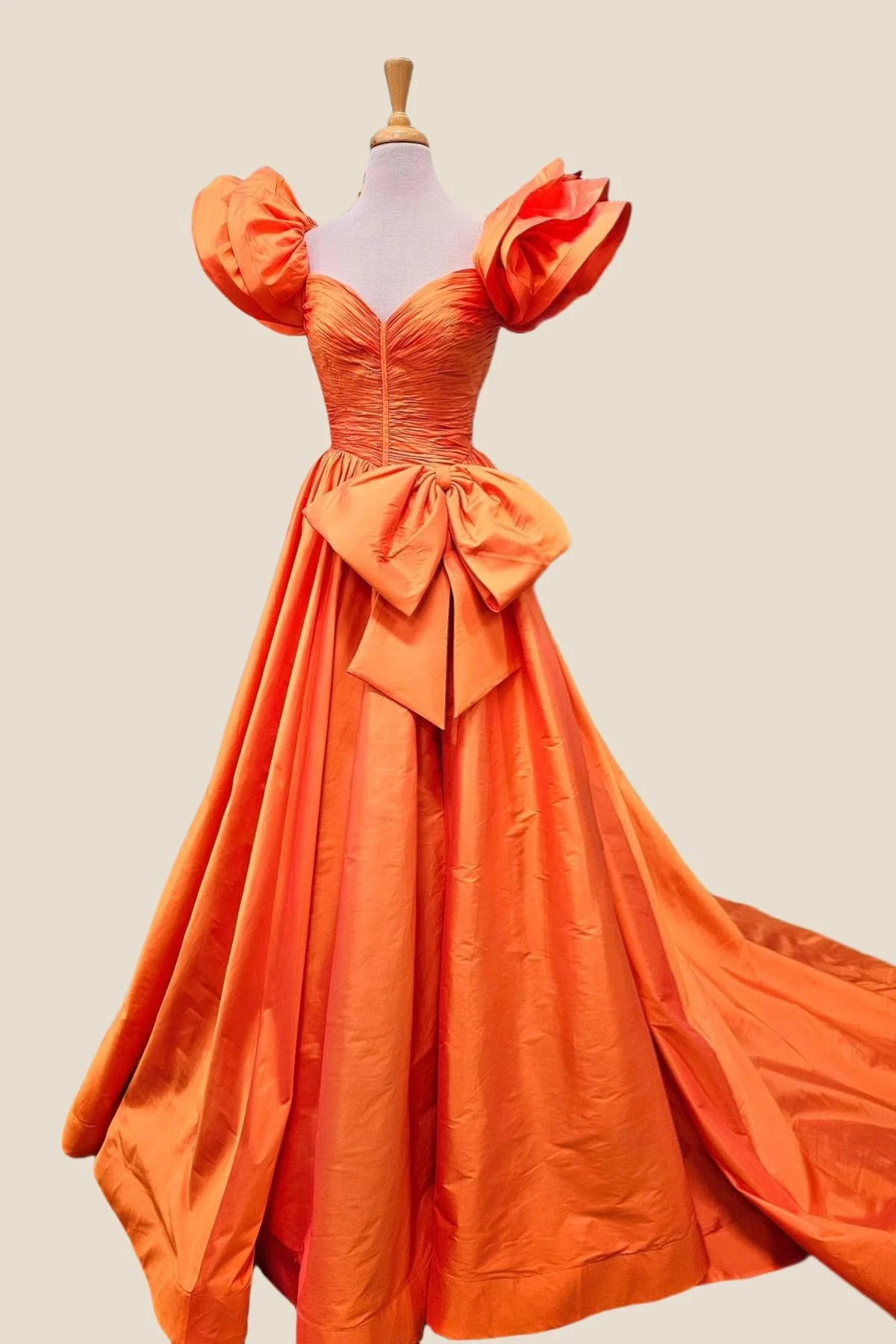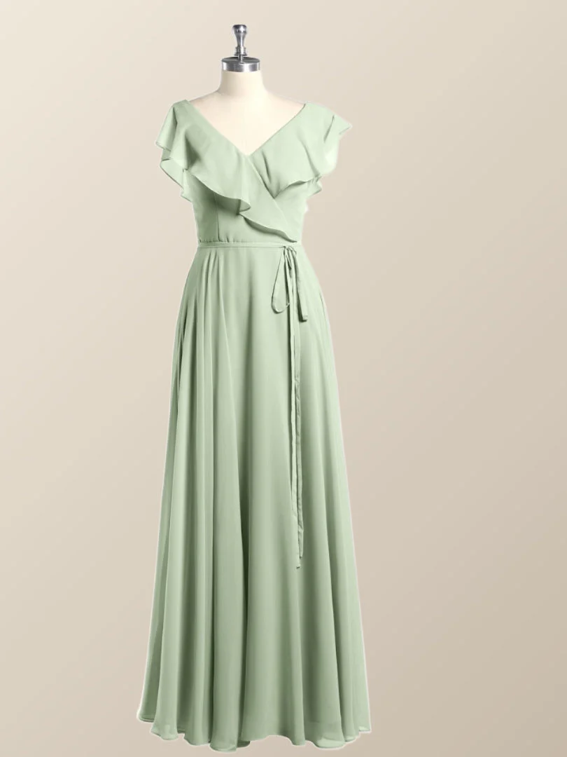 Ruffle Sleeves Orange Bow Long Dress with Slit