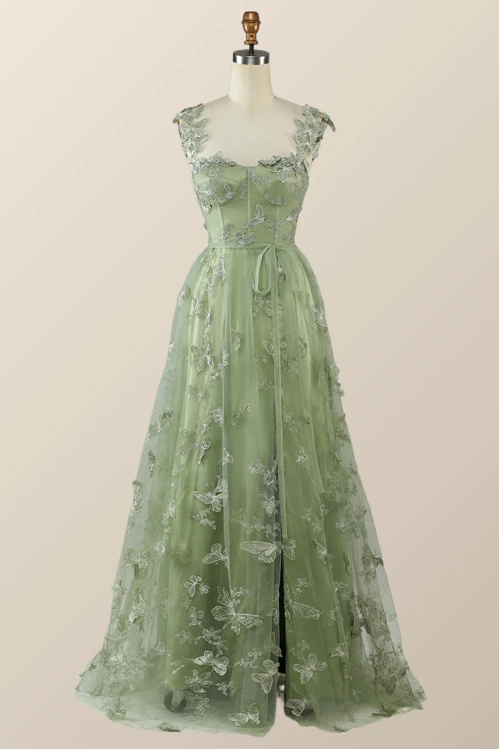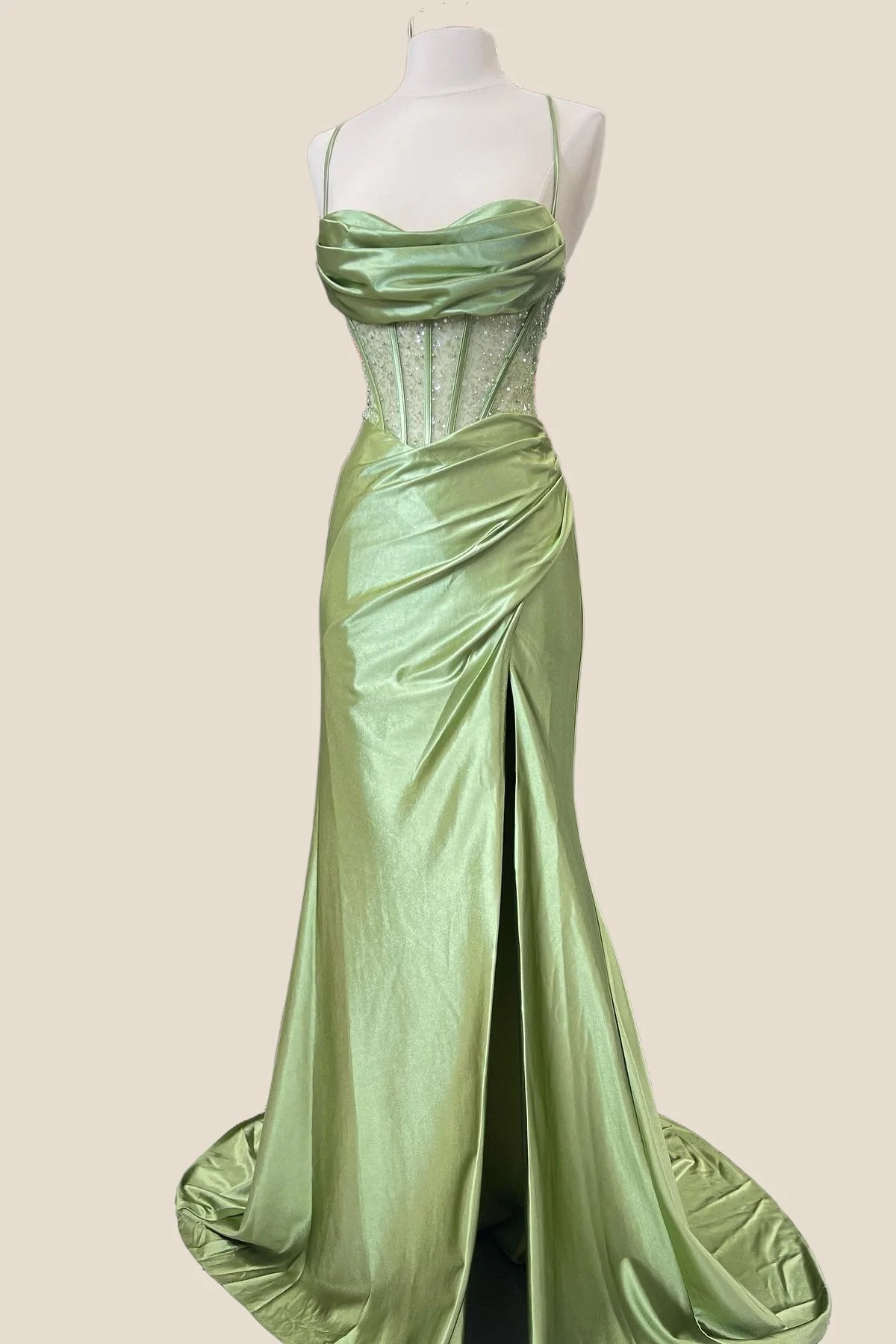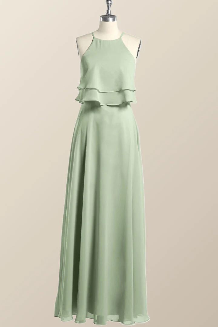Sage Green Chiffon Ruffles Chiffon Long Bridesmaid Dress
