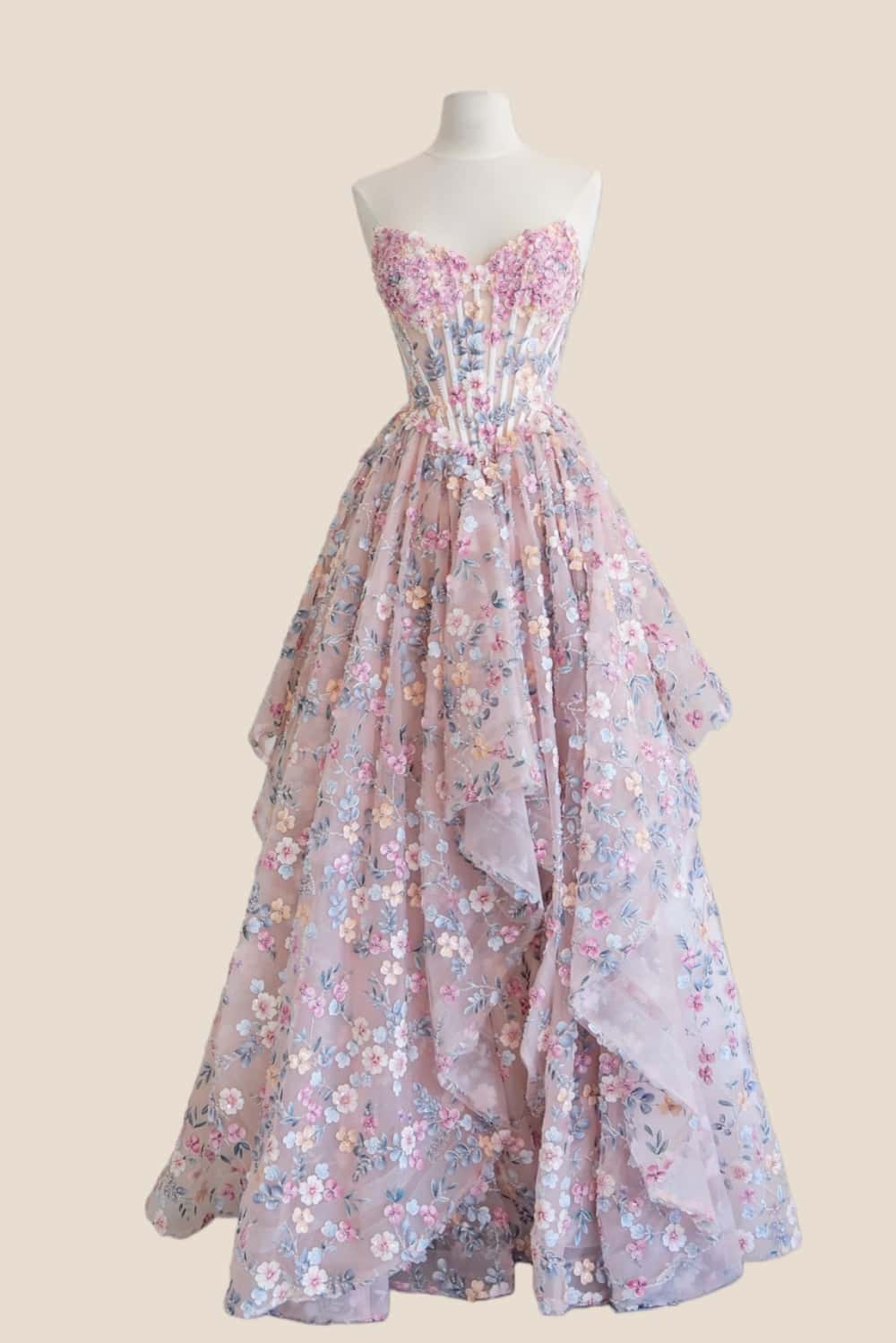Corset 3D Floral A-line Ball Gown