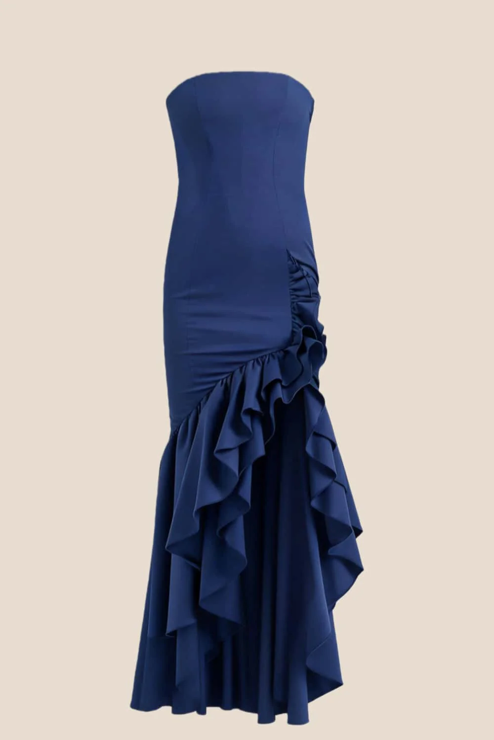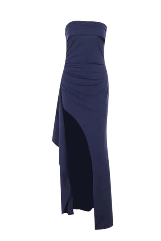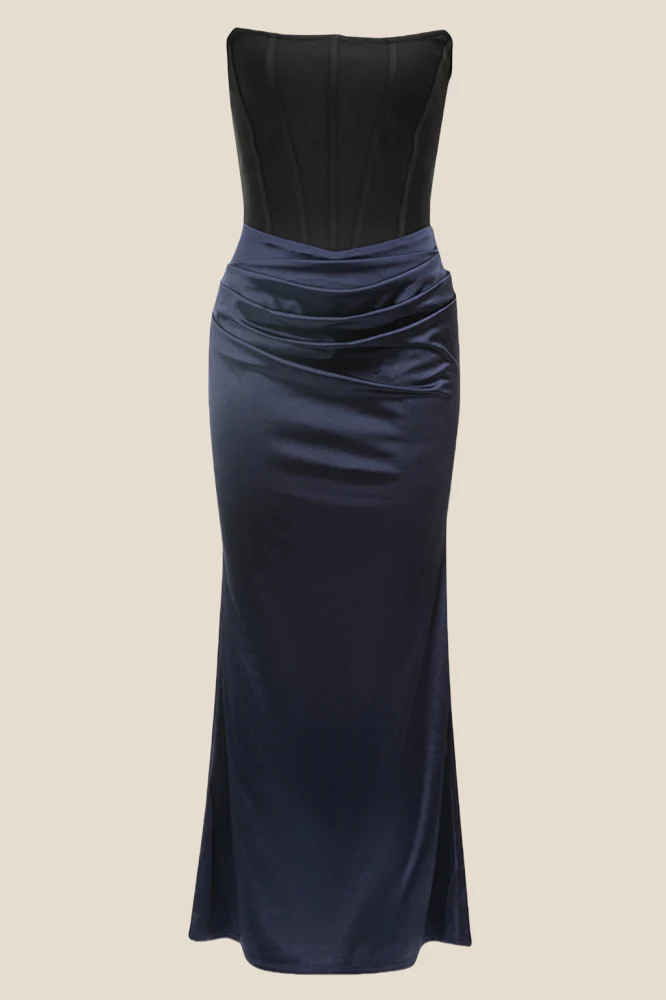 Strapless Navy Blue Ruched Short Dress