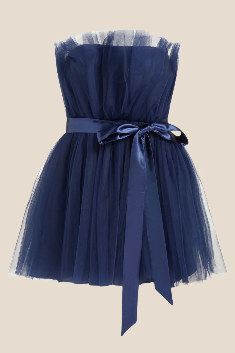 Strapless Navy Blue Tie Front Short Dress