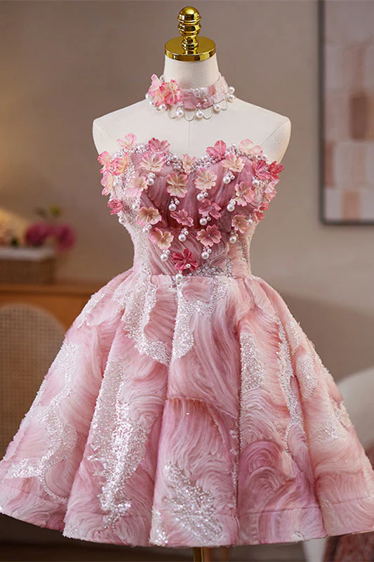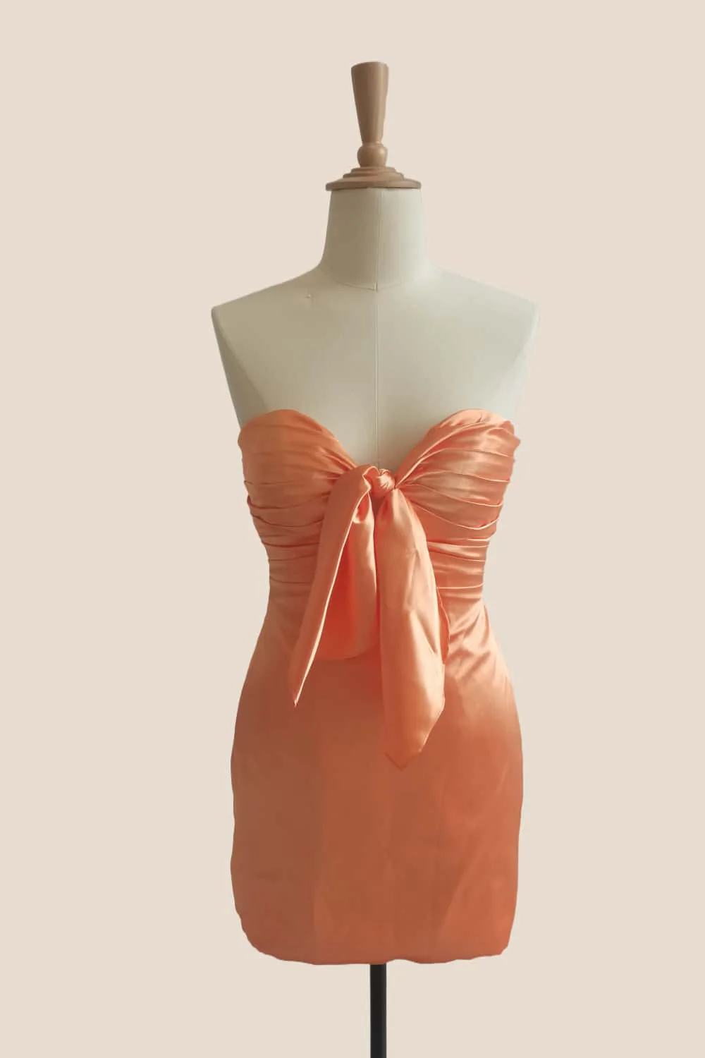 Strapless Orange Tie Front Short Dress