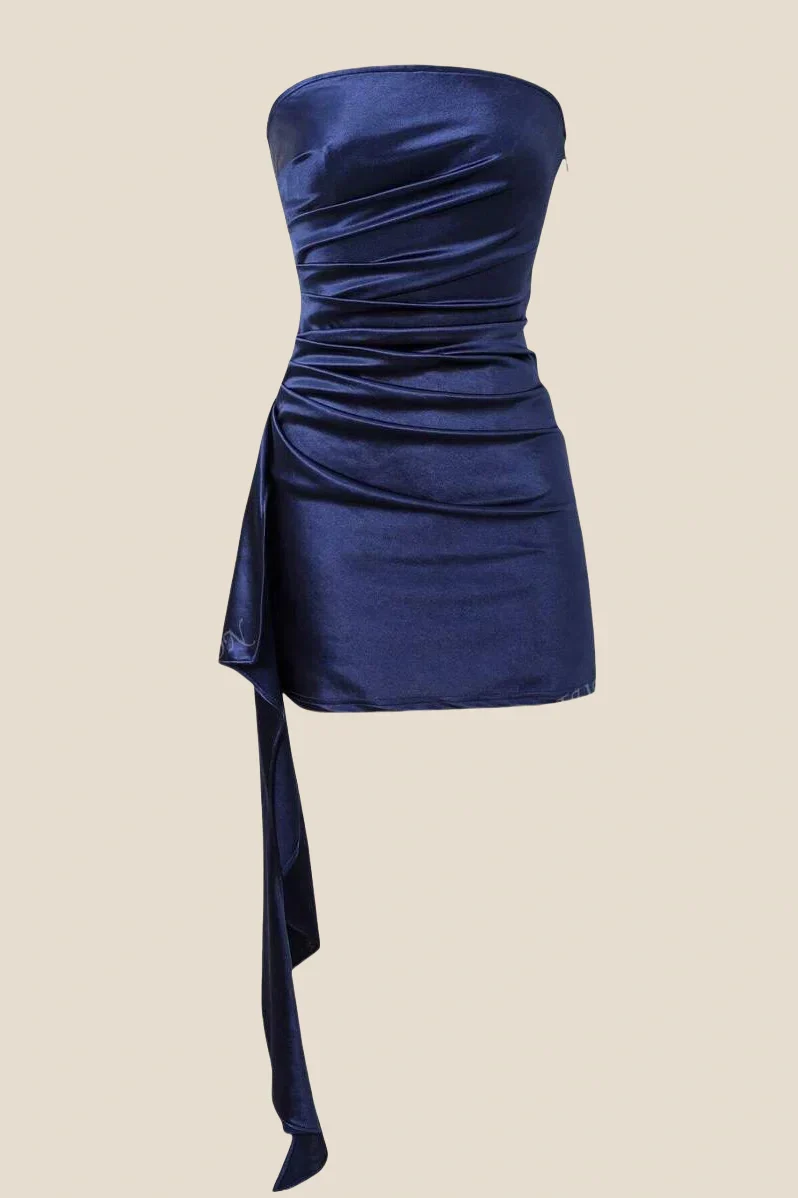 Strapless Navy Blue Ruched Short Dress