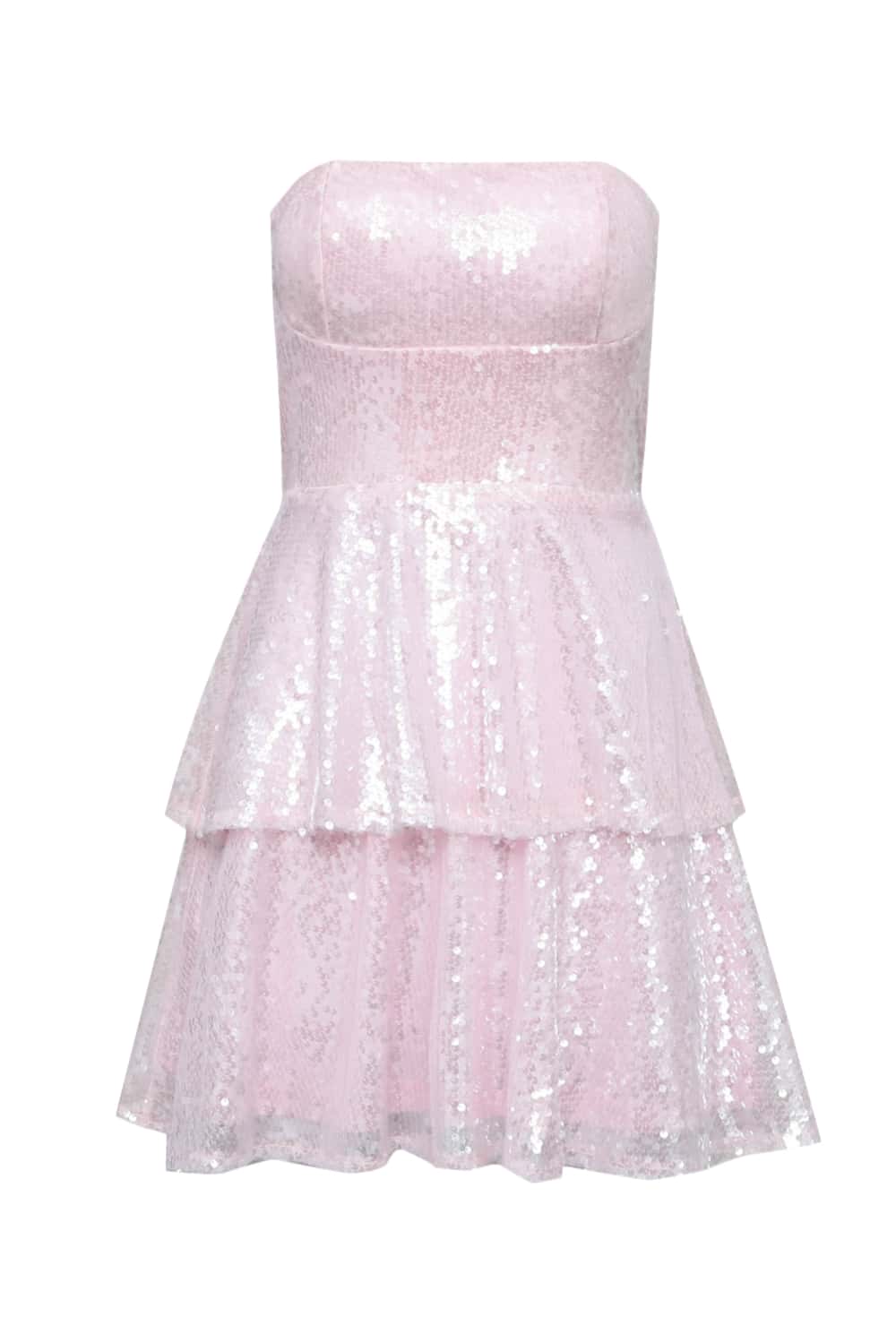 Strapless Pink Tie Front Short Dress