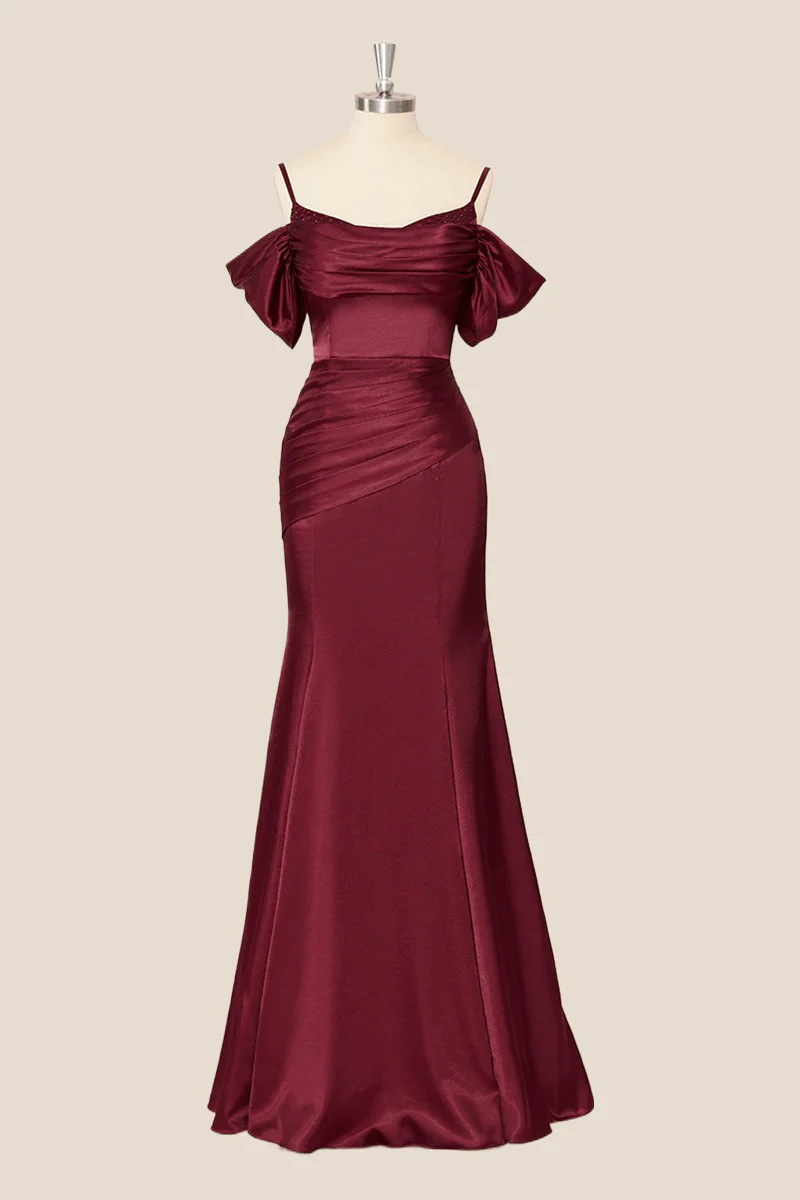 Straps Burgundy Satin Cowl Neck Mini Dress
