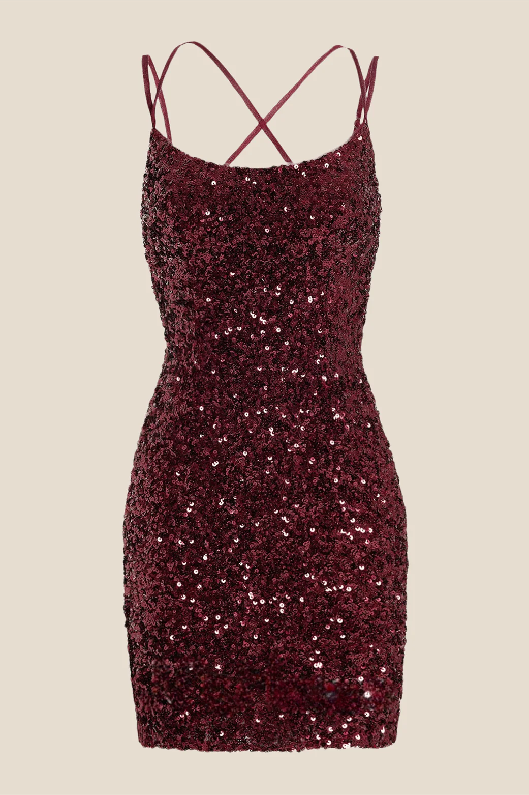 Double Straps Burgundy Sequin Short Dress