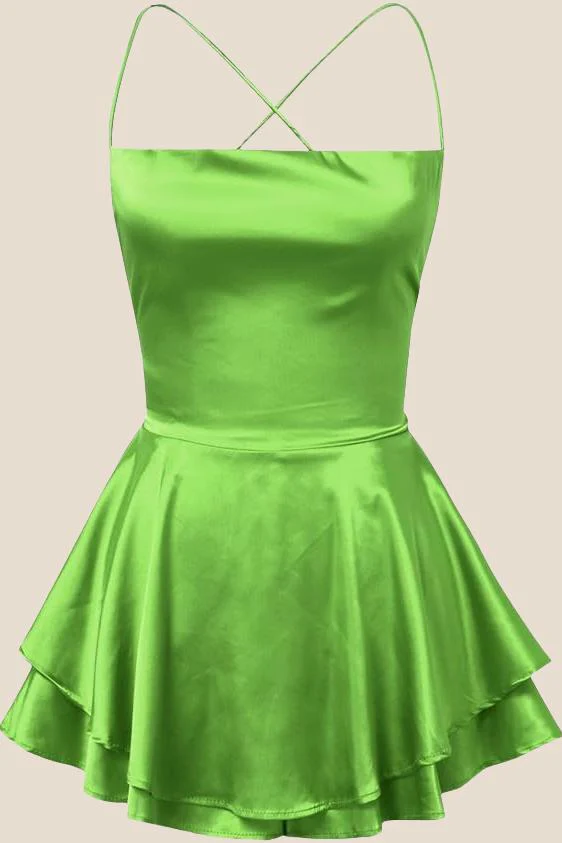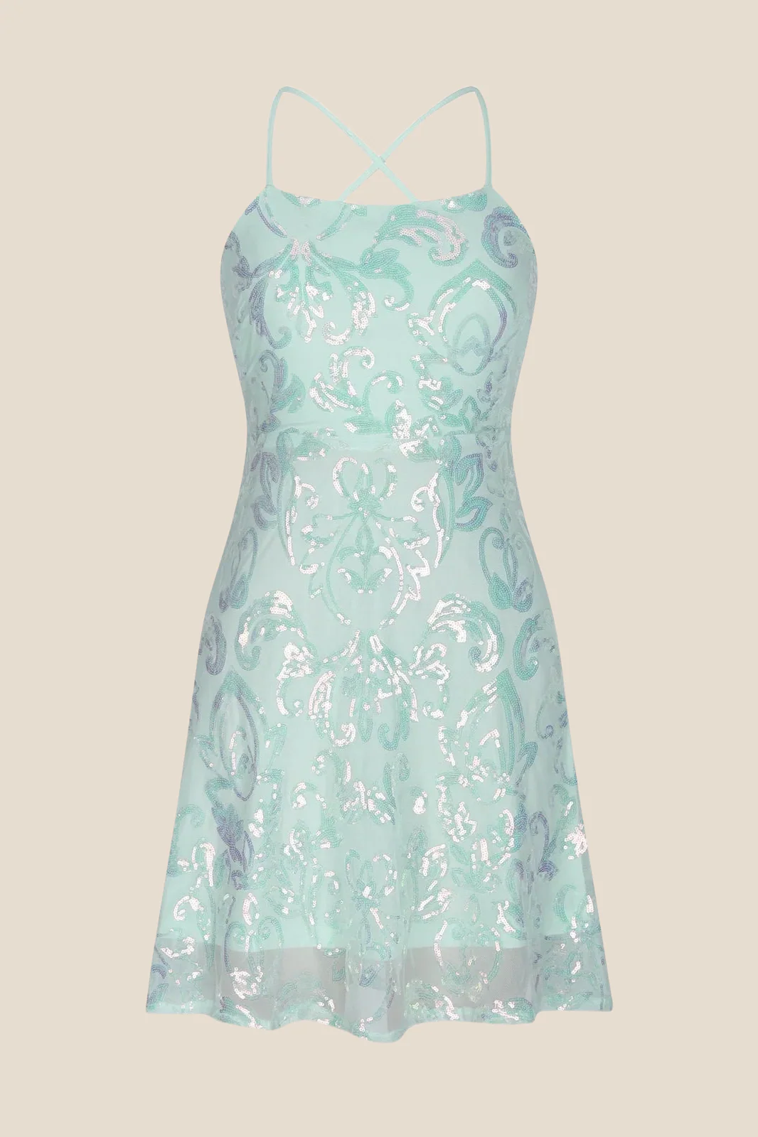 Straps Mint Green Sequin A-line Short Dress