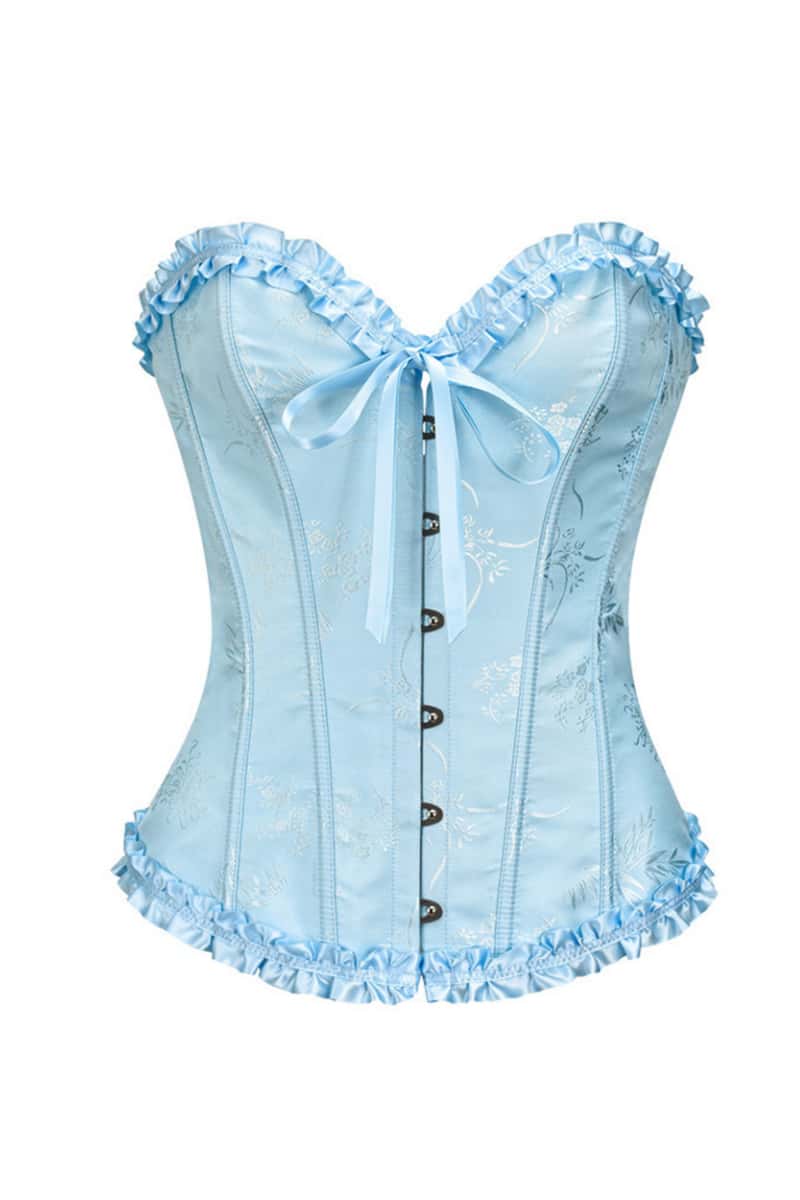 Sweetheart Blue Lace-Up Floral Corset
