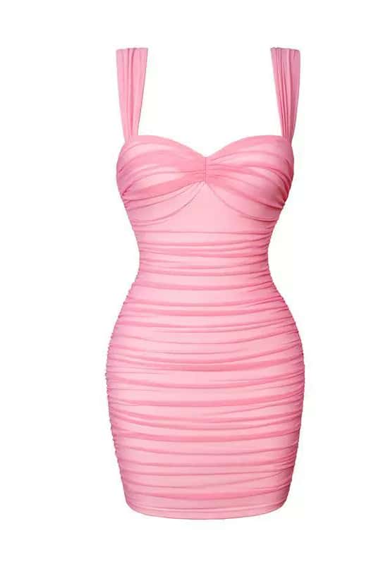 Pink Ruched Tight Dress