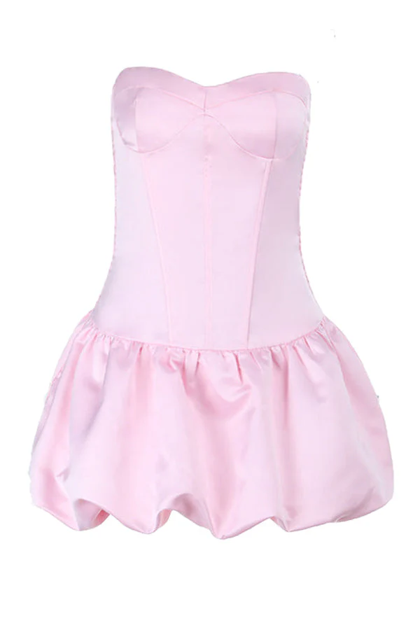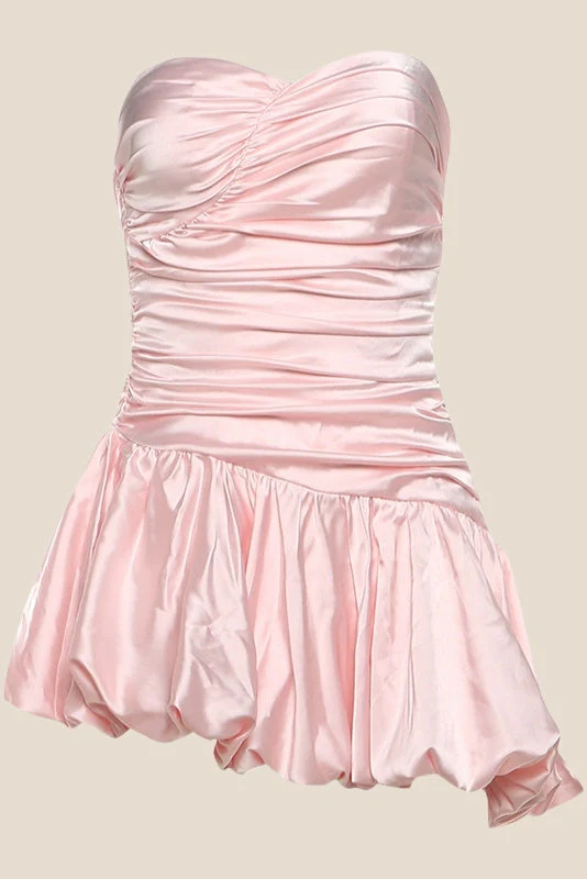 Sweetheart Pink Ruched A-line Bubble Short Dress