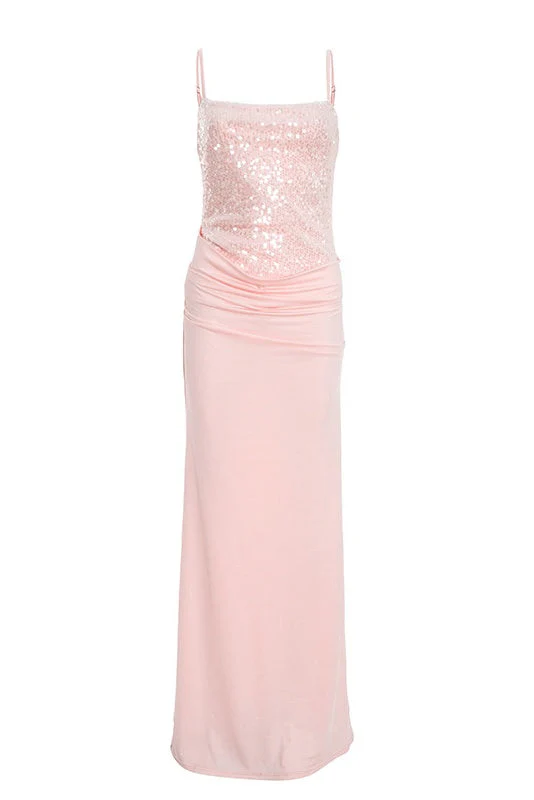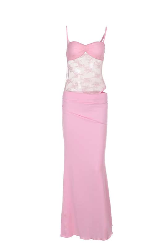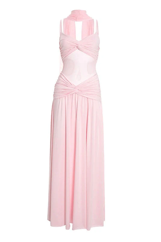 Pink Straps Twist Tie Long Dress