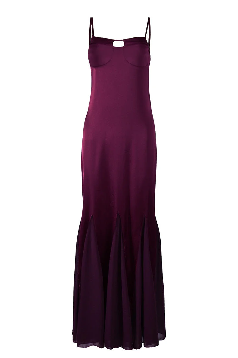 Plum Cut-out A-line Long Dress