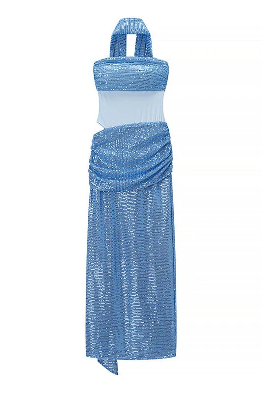 Blue Low Back Fitted Maxi Dress